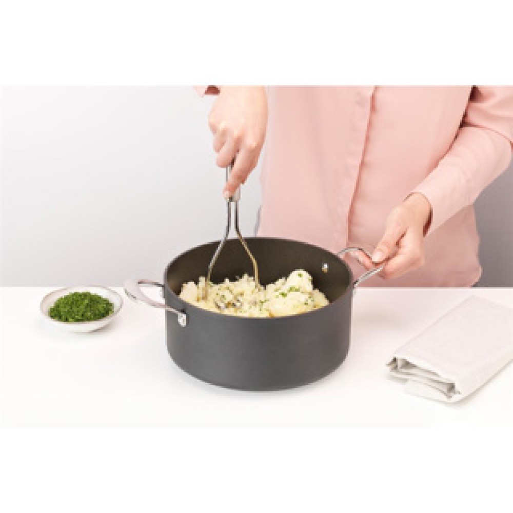 De Brabantia Profile pureestamper is het perfecte hulpmiddel voor in jouw keuken. Met deze stijlvolle, zilveren stampers maak je eenvoudig de lekkerste puree van aardappelen en groenten. Door het ergonomische ontwerp houd je de pureestamper comfortabel vast, zelfs bij langdurig gebruik.