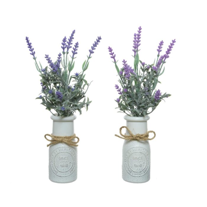 Breng de serene charme van lavendel in uw huis met de set van twee assorti lavendelplanten in pot. Deze prachtige planten zijn perfect voor zowel binnen- als buitendecoratie, en voegen een vleugje kleur en geur toe aan elke ruimte. Dankzij hun ontspannende eigenschappen creëren ze een rustgevende sfeer, of ze nu uw tuin, terras of interieur verfraaien. Geniet van de tijdloze schoonheid en de aromatische geur van lavendel, en transformeer uw omgeving in een oase van kalmte en elegantie.