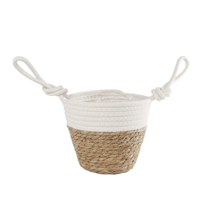 - Materiaal: Natuurlijk riet en crème katoen