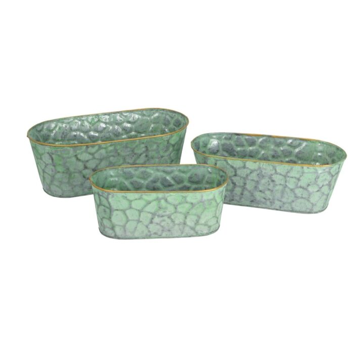 Breng een frisse touch in jouw interieur of buitenruimte met de PTMD bloembak Dianne in een set van drie. Deze ovale bloempotten, uitgevoerd in een fraaie groene kleur, zijn vervaardigd uit duurzaam zink, waardoor ze zowel stijlvol als praktisch zijn. Perfect voor het presenteren van jouw favoriete planten en bloemen, voegen ze een decoratief element toe aan elk hoekje. Of je nu binnen of buiten plant, deze bloempotten zijn een prachtige aanvulling op jouw groene decoratie. Creëer een levendige sfeer met deze veelzijdige bloembakken.
