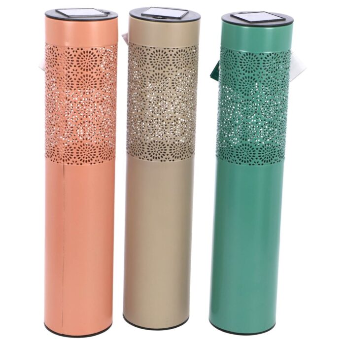 Voeg een vleugje charme toe aan uw buitenruimte met de stijlvolle Solar lantaarn of fakkel van ijzer. Deze elegant vormgegeven verlichting is niet alleen praktisch, maar ook aantrekkelijk, dankzij het duurzame ijzer en de geïntegreerde zonnepanelen. Tijdens de dag absorbeert de lantaarn zonlicht om 's avonds een warm, uitnodigend licht te verspreiden. Perfect voor terrassen of tuinen, creëert deze lantaarn een gezellige sfeer waar u heerlijk kunt ontspannen. Verkrijgbaar in verschillende kleuren, is er altijd een stijl die bij uw buitenomgeving past. Geniet van de magie van solarverlichting!