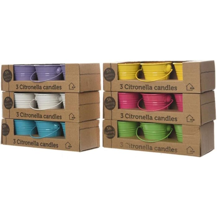 Proef de perfecte combinatie van sfeer en functionaliteit met de Citronella kaarsjes in een handig emmertje. Deze set van drie kleurrijke kaarsen is ideaal voor gebruik zowel binnen als buiten. Met een brandduur die lang genoeg is om je avonden te verlichten, zijn ze perfect voor het afschrikken van insecten. Verkrijgbaar in diverse levendige kleuren, voegen deze kaarsen niet alleen een vrolijke touch toe aan je decor, maar creëren ze ook een uitnodigende ambiance voor elk evenement of gezellige zomeravond op het terras. Maak je buitenruimte compleet met deze charmante toevoeging.