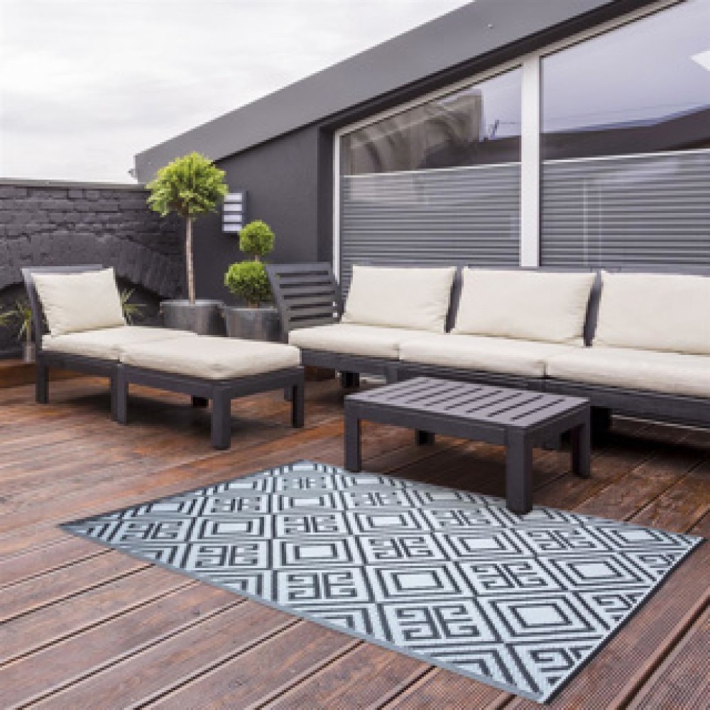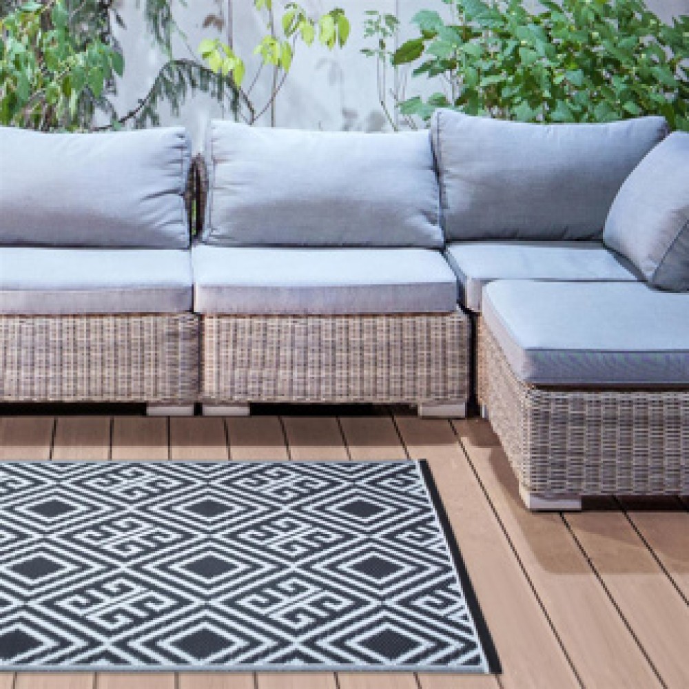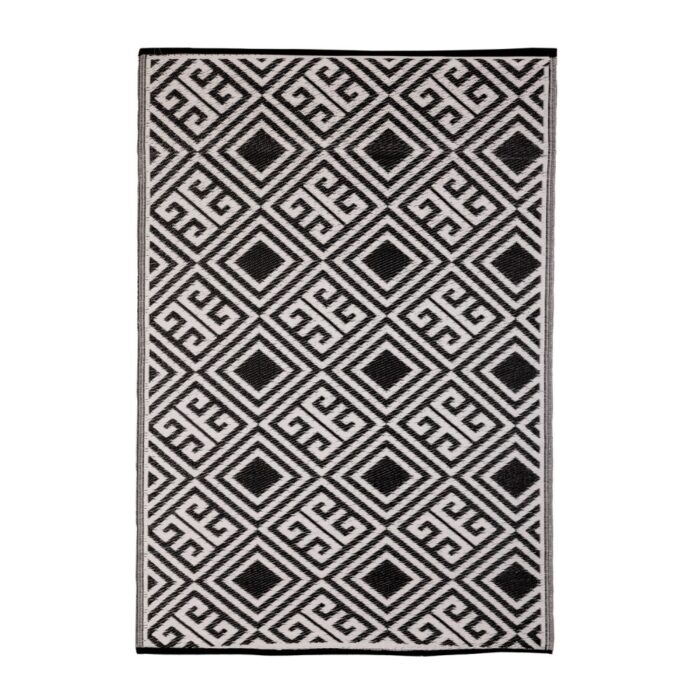 Het Tuintapijt 120 x 180 cm is de perfecte aanvulling voor uw buitenruimte. Dit stijlvol zwart-witte tapijt biedt een mooie basis onder uw tuinstel. Met zijn praktische ontwerp is het ideaal voor elk terras of balkon.