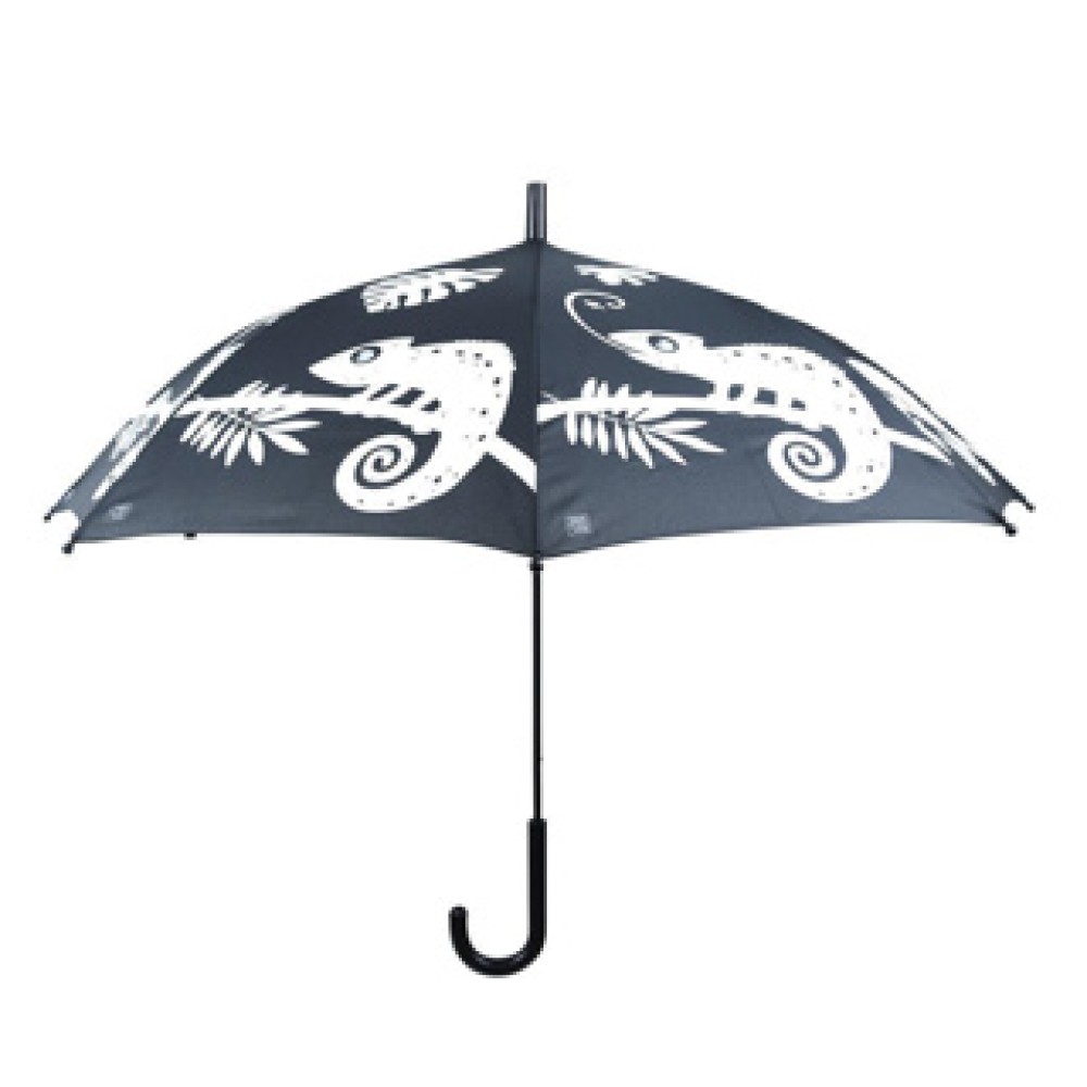 Gemaakt van duurzaam staal en polyester, de Kleur veranderende paraplu kameleon biedt optimale bescherming tegen regen voor je kind. Maar wat dit item echt leuk maakt, is de vrolijke kameleonprint die van kleur verandert bij nat worden!