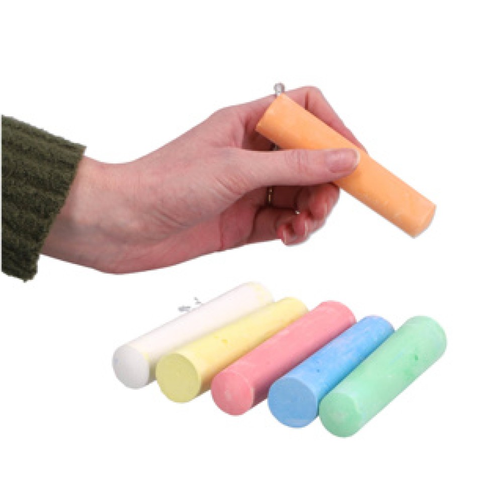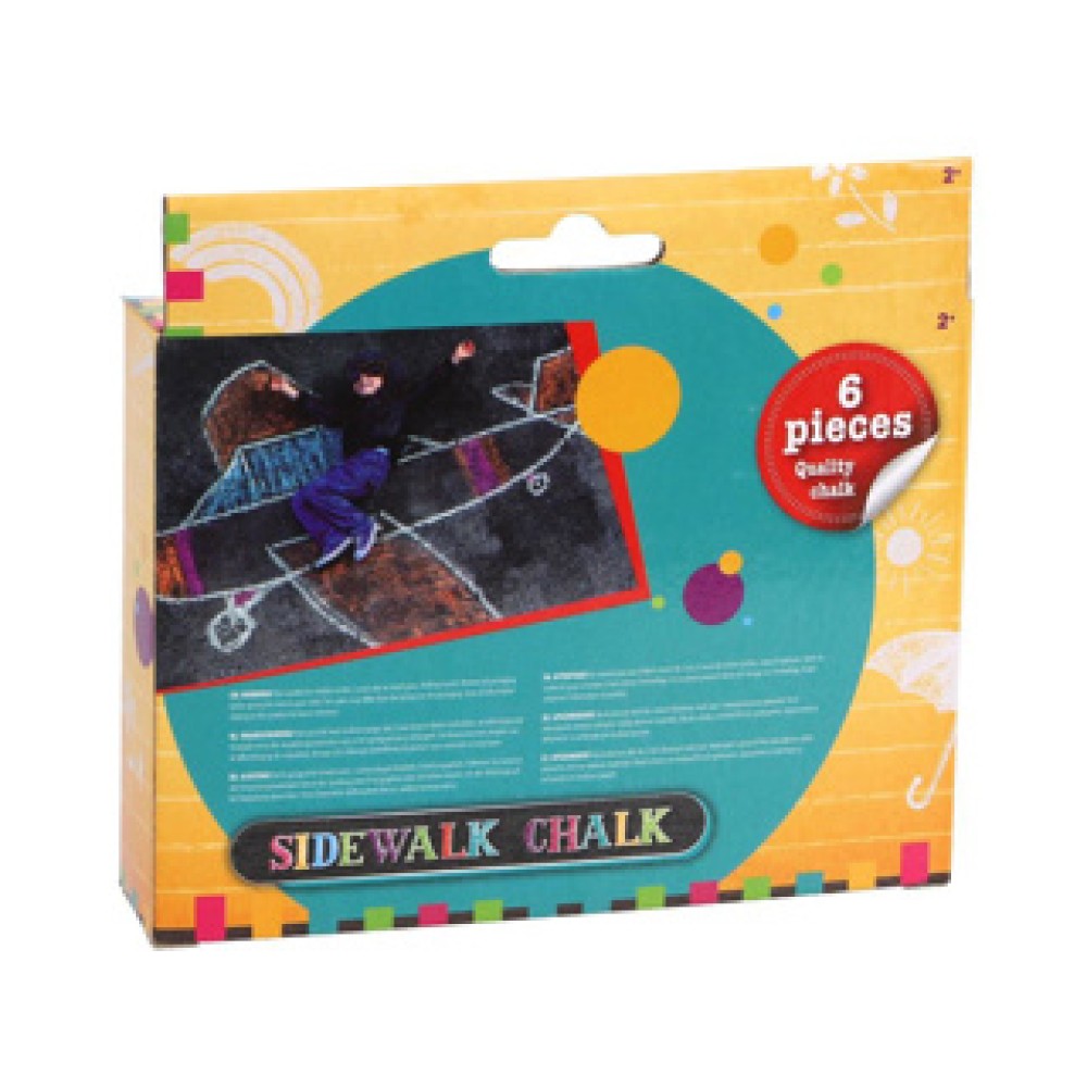 Stoepkrijt. Dit doosje bevat 6 stuks stoepkrijt. De kleuren die erin zitten zijn wit, geel, roze, blauw, groen en oranje. Kinderen kunnen mooie creaties maken en hun fantasie verrijken. Geschikt voor kinderen vanaf 2 jaar.