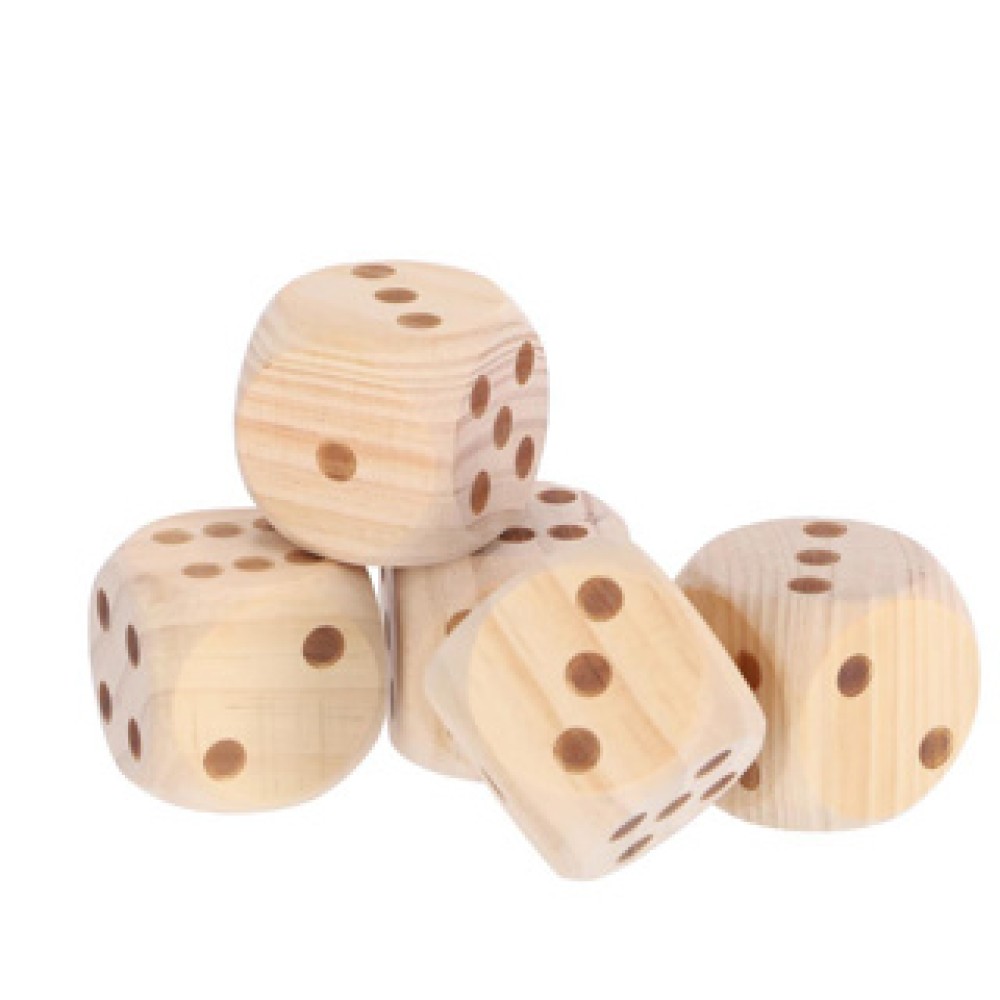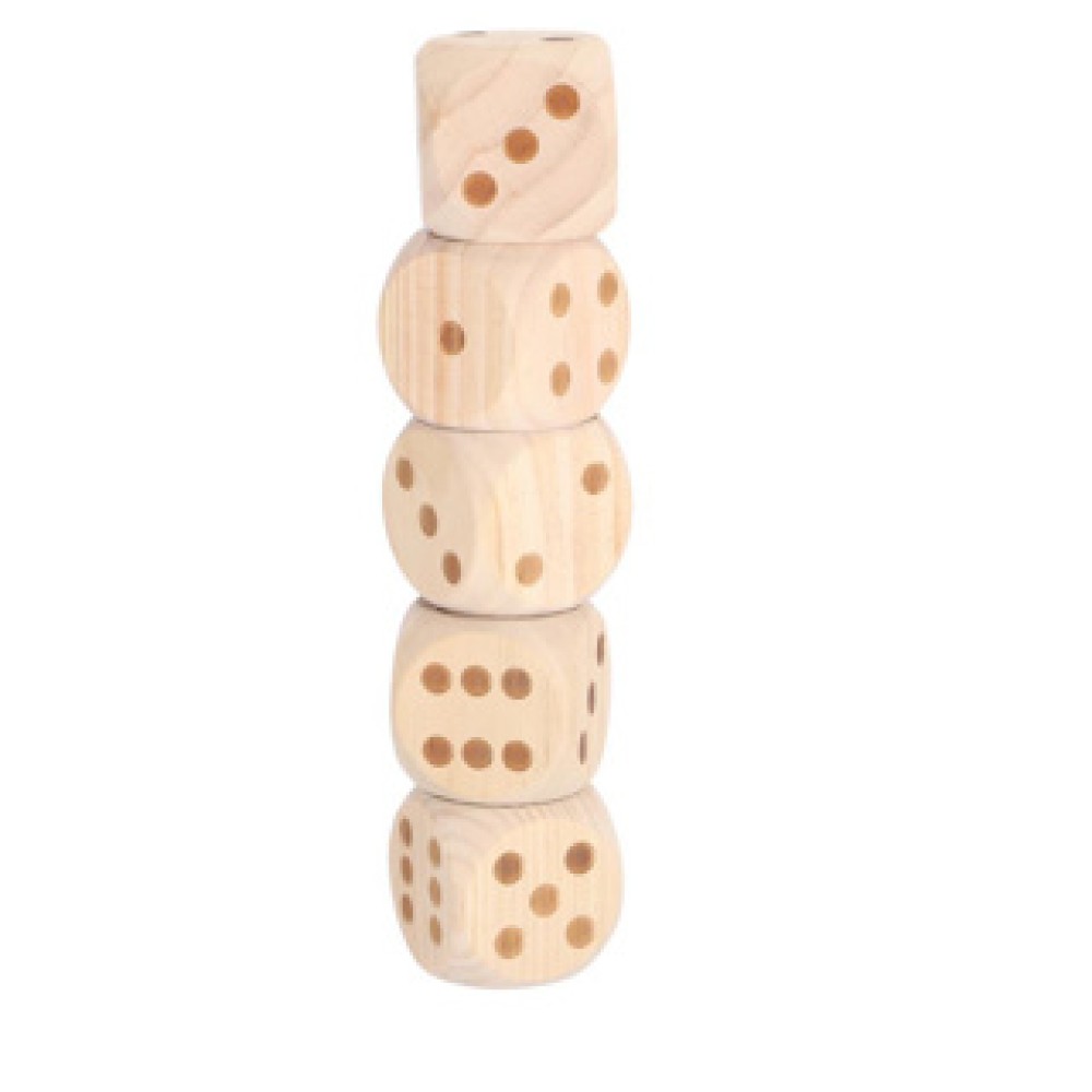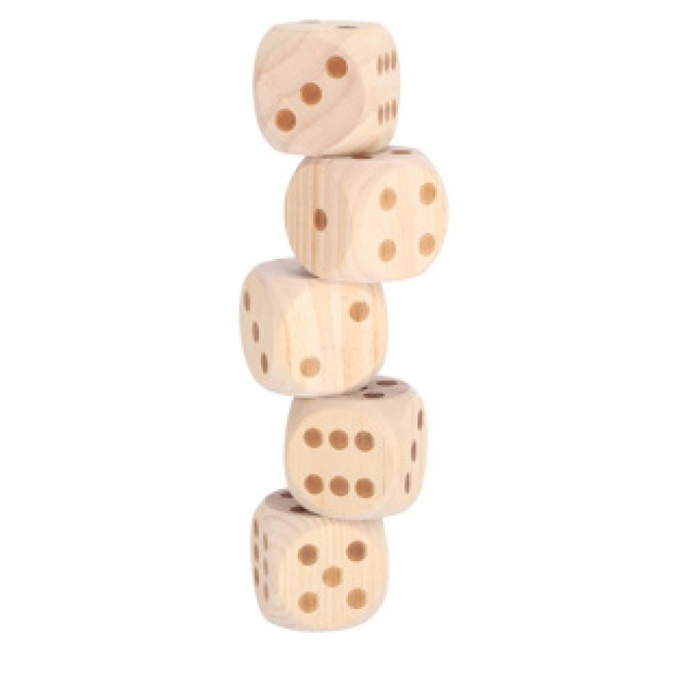 - Vijf grote houten dobbelstenen voor extra zichtbaarheid
