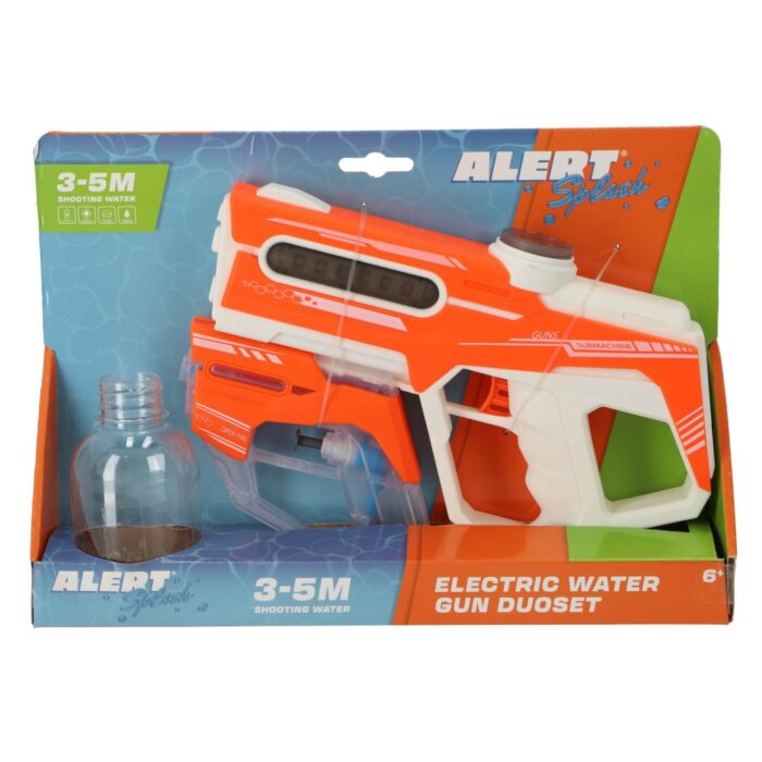 Beleef eindeloos spetterplezier met het Alert Splash waterpistool duoset! Dit elektrische waterpistool is perfect voor een verfrissende strijd in de zomer. Met een oplaadbare USB-aansluiting ben je altijd klaar voor actie. Geschikt voor zowel kinderen als volwassenen, dit set zorgt voor urenlang waterplezier!