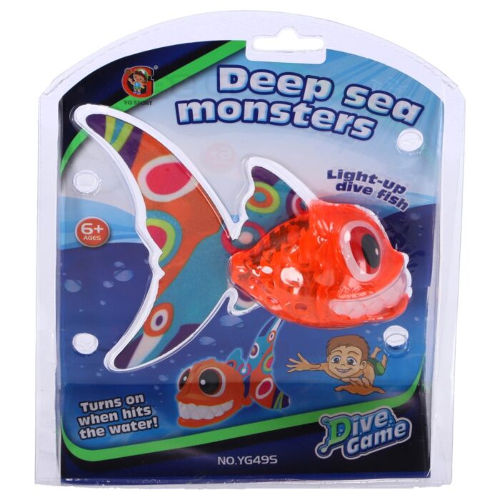 De Duik Vis met Grote Tanden en Licht is het perfecte speelgoed voor avontuurlijke kinderen. Deze piranha-achtige vis zorgt voor urenlang waterplezier en stimuleert actief spel. Kinderen vanaf 6 jaar kunnen de vis vangen terwijl hij zwemt en licht geeft, wat het nog spannender maakt!