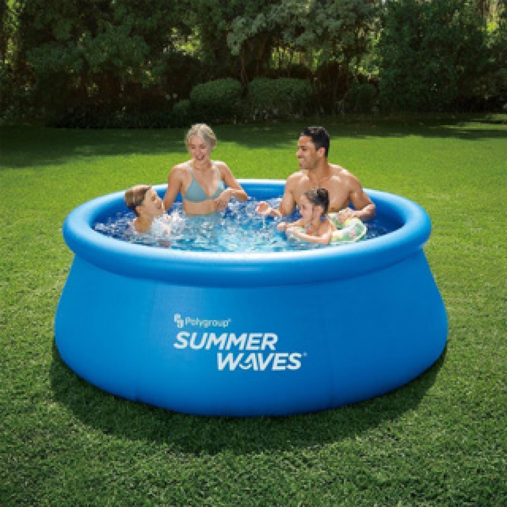 Het Summer Waves Quick Set Zwembad is de perfecte toevoeging aan jouw tuin voor warme zomerdagen. Dit opblaasbare zwembad heeft een diameter van 244 cm en is 76 cm hoog, waardoor het geschikt is voor de hele familie. Met een capaciteit van 2.302 liter water ben je verzekerd van plezier en verfrissing!