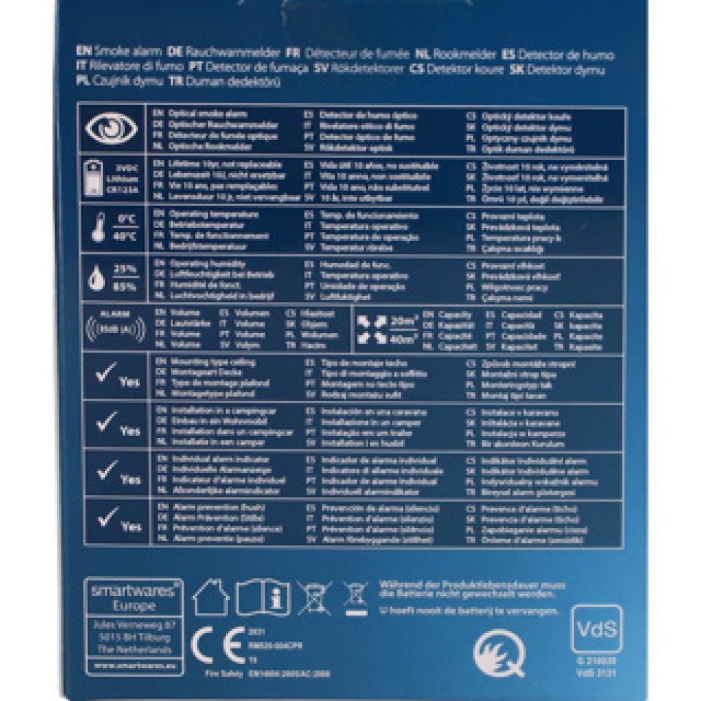 De Smartwares RM520 rookmelder beschermt jouw huis tegen brandgevaar. Met een lange levensduur van 10 jaar hoef je je geen zorgen te maken over het regelmatig vervangen van de batterij. Deze rookmelder zorgt ervoor dat jij en jouw gezin veilig zijn, dag en nacht.