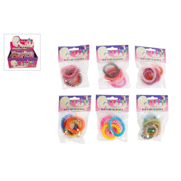 - 4 kleurrijke armbanden en haarbandjes
