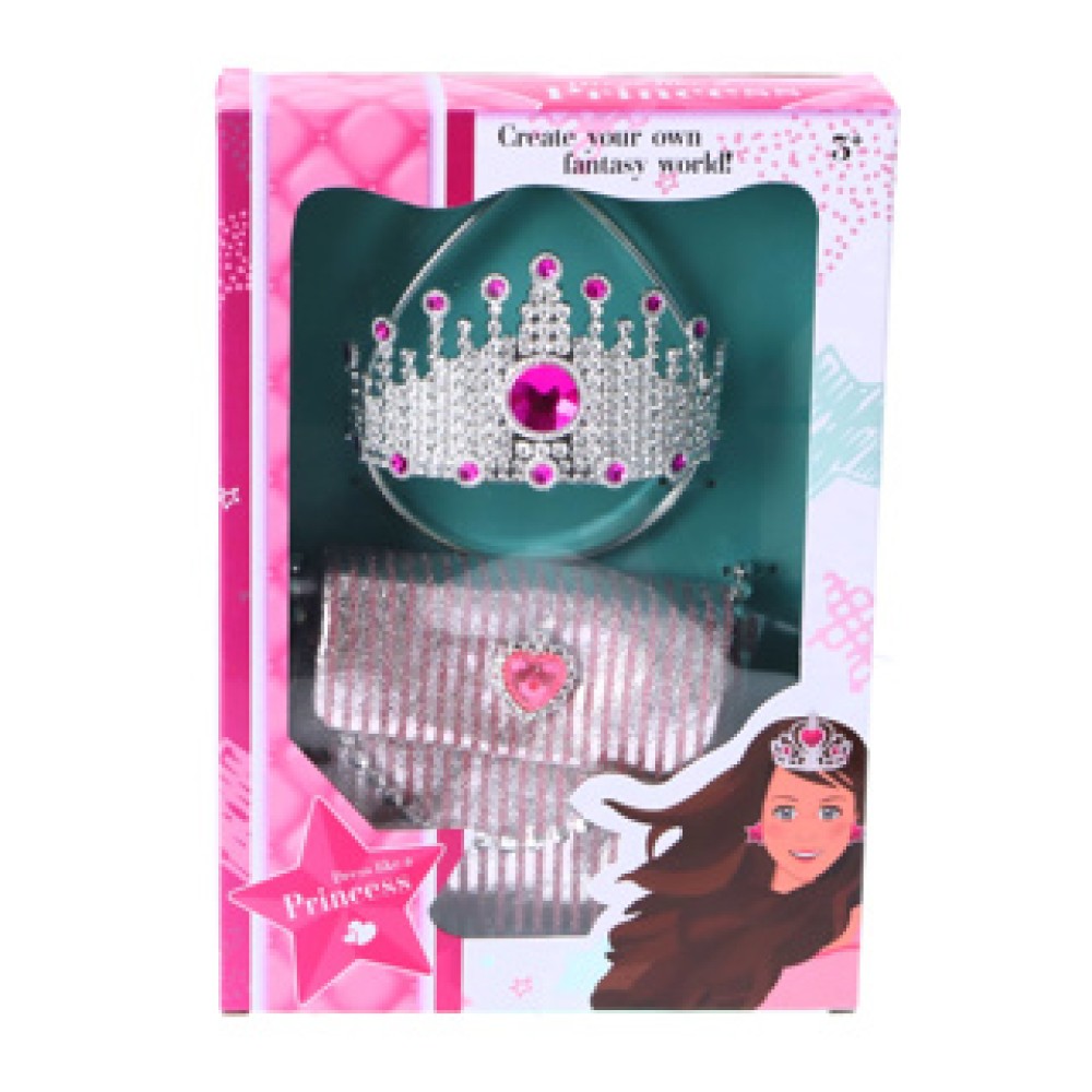 Laat je kleintje stralen als een prinses met de betoverende Tiara met tasje, een prachtige set die bestaat uit een glinsterende tiara en een schattig tasje. Verkrijgbaar in twee sfeervolle uitvoeringen, één met sprankelende blauwe hartjes en de ander in zachte roze tinten, is dit ideaal voor spelletjes en verkleedpartijen. Het tasje is perfect voor het opbergen van kleine schatten en accessoires, waardoor het de perfecte aanvulling is op elk prinsessenoutfit. Geschikt voor kinderen vanaf drie jaar, zorgt deze set voor urenlang speelplezier en fantasierijke avonturen!