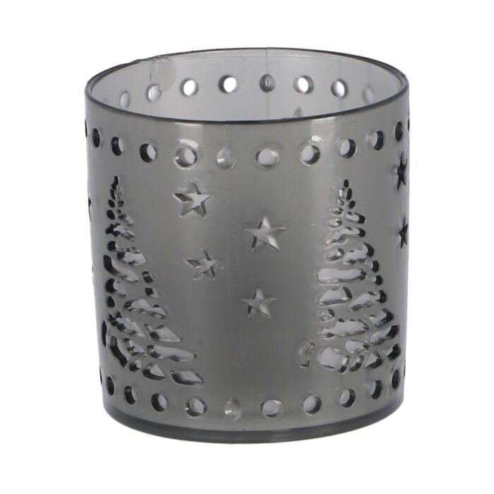 Breng sfeer in uw interieur met deze prachtige grijze theelichthouder, uitgerust met een LED-kaarsje van kunststof. De houder, versierd met charmante uitsneden van kerstbomen en sterren, is perfect voor het creëren van een feestelijke ambiance tijdens de kerst of andere bijzondere gelegenheden. Dankzij de veiligheid van de LED-technologie hoeft u zich geen zorgen te maken over vlammen, waardoor het een ideale keuze is voor elk huis. Geniet van een warme en gezellige verlichting met deze stijlvolle en duurzame decoratie.
