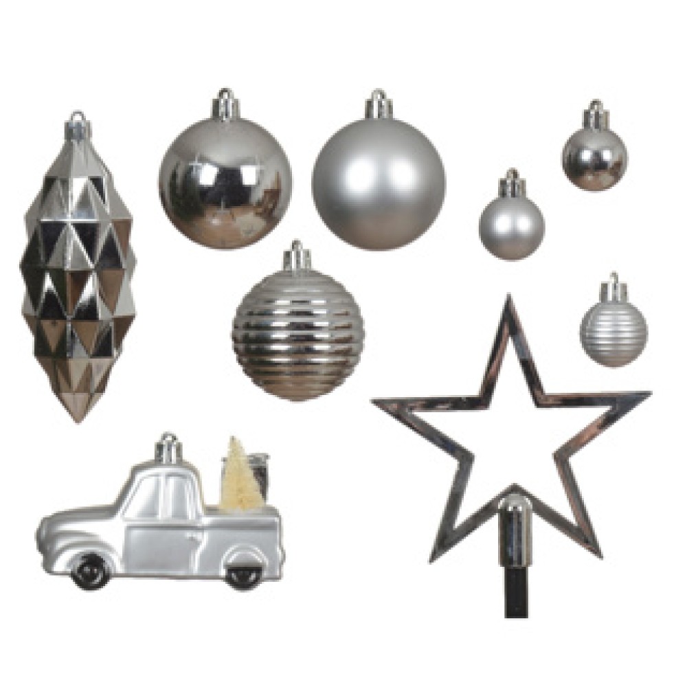 Boom decoratie onbreekbaar zilver 40 stuks