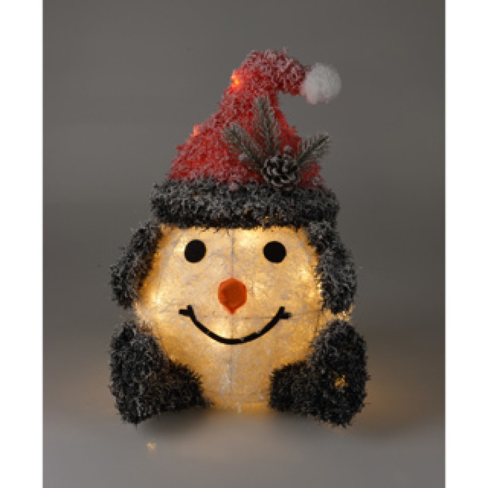 Breng de feestelijke magie in huis met deze charmante sneeuwpop, beschikbaar in twee verschillende formaten. Dit verlichte decoratieve item voegt een warme en gezellige sfeer toe aan uw kerstdecoraties. Voorzien van sfeervolle LED-verlichting en een praktische timerfunctie van zes uur, is de sneeuwpop gemakkelijk te gebruiken. Dankzij de batterijwerking zijn er geen storende snoeren, waardoor u de sneeuwpop overal kunt plaatsen. Creëer een betoverende ambiance in uw huis en laat deze vrolijke sneeuwpop een stralend middelpunt van uw feestdagen zijn!