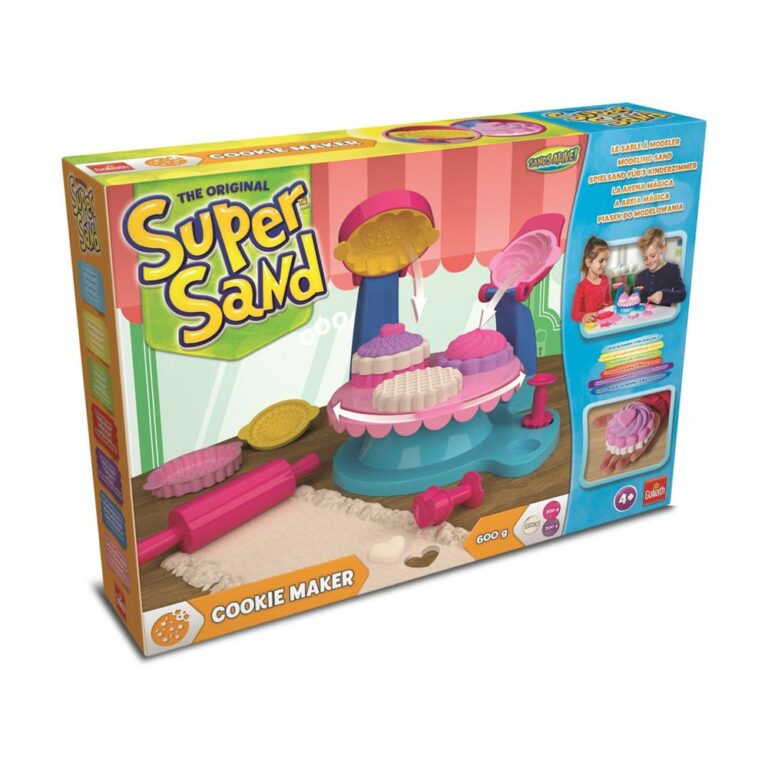 De Super Sand Cookie Maker is ideaal voor creatieve kinderen die van bakken en bouwen houden. Met deze set kan je kind zijn of haar eigen zandkoekjes maken. Het Super Sand is hypoallergeen en antibacterieel, wat het veilig maakt voor uw kind. Het pakket bevat vormen en gereedschappen, evenals speciaal zand dat droog aanvoelt maar gemakkelijk kan worden gevormd. Het is net alsof je met nat strandzand speelt, maar dan binnen en zonder de rommel! Deze set is perfect voor urenlang speelplezier.