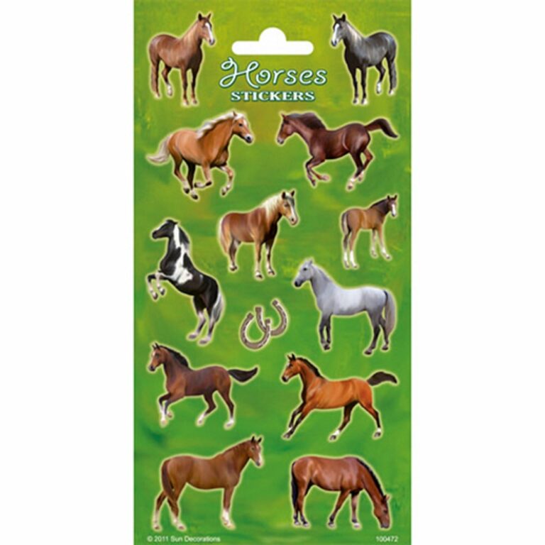 Met deze leuke paardenstickers kan er van alles versiert worden. Tekeningen, knutselwerkjes of etuis. Alles wordt vrolijke met deze leuke paarden stickers! Bestaat uit 1 vel met daarop 13 stickers. Geschikt voor kinderen vanaf 3 jaar.