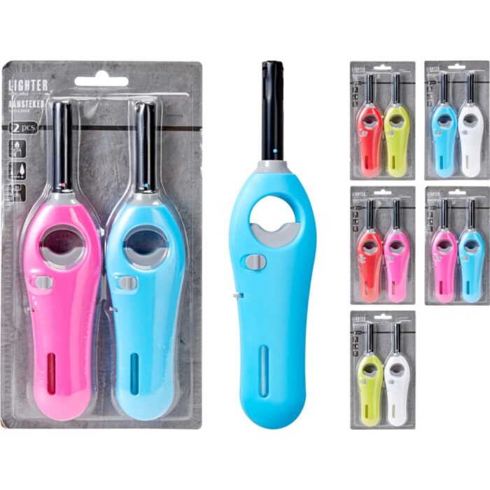 Ontdek de praktische Aansteker set van twee stuks in aantrekkelijke assorti kleuren. Met een handige lengte biedt deze aansteker extra bereik en zorgt voor veilige ontsteking van kaarsen, haarden, BBQ's en kampvuren. Ideaal voor zowel binnen- als buitentoepassingen, deze lighters zijn perfect voor elke gelegenheid. De kleurrijke ontwerpen maken ze niet alleen functioneel, maar ook stijlvol. Voeg een vleugje gemak en flair toe aan je aansteekmomenten met deze veelzijdige en betrouwbare aansteker set.
