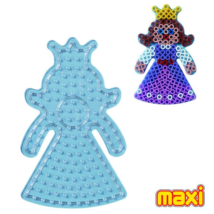 Ontdek de Hama Maxi Strijkkralen Grondplaat Prinses! Dit transparante pegboard laat kinderen hun creativiteit de vrije loop laten. Met de strijkkralen kunnen ze mooie prinsesfiguren maken. Na het strijken kunnen ze hun creaties gebruiken om mee te spelen of te versieren.