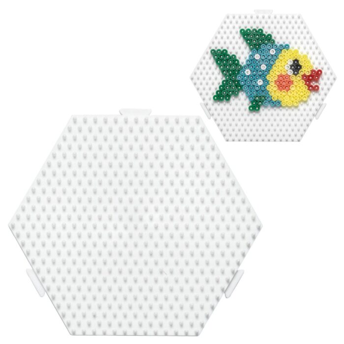 De Hama Strijkkralen Grondplaat Zeshoek Koppelbaar Wit is perfect voor creatieve kinderen en volwassenen. Deze grote, zeshoekige pegboard helpt je om de mooiste figuren te maken met strijkkralen. Dankzij het koppelbare ontwerp kun je meerdere platen aan elkaar klikken en nog grotere kunstwerken creëren.