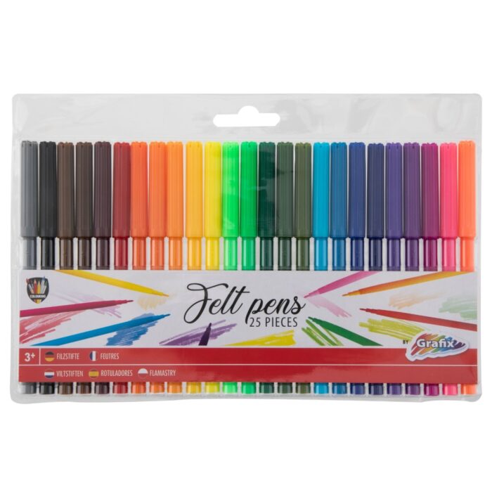 Met de 25 viltstiften kunnen kinderen hun fantasie tot leven brengen. Of ze nu aan het kleuren zijn of hun eigen kunstwerken maken, deze stiften zijn de ideale aanvulling op hun creatieve activiteiten.
