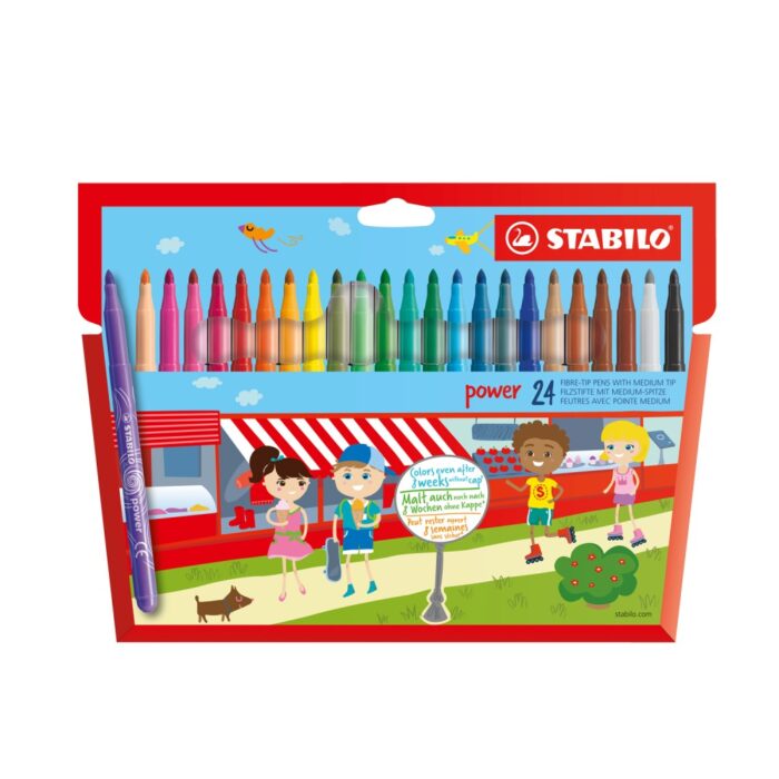 De Viltstiften Stabilo Power Stiften zijn perfect voor elke creatieveling, van kinderen tot volwassenen. Met 24 stuks in één verpakking heb je altijd de juiste kleur bij de hand. Deze stiften zijn ideaal voor tekenen, kleuren en het maken van mooie kunstwerken.