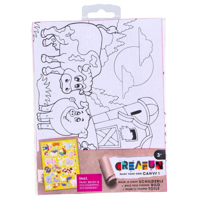 De Creafun schilderen op canvas set is perfect voor creatieve kinderen! Deze 6-delige kit laat kinderen hun eigen kunstwerken maken door te schilderen en stickers toe te voegen. Dit stimuleert niet alleen de creativiteit maar ook de fijne motoriek.