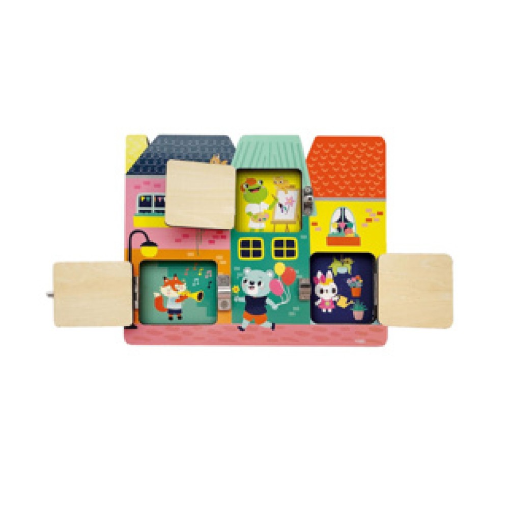 De SES houten puzzel met slotjes is een leuk en educatief speelgoed voor kinderen vanaf 3 jaar. Deze puzzel helpt kinderen bij het ontwikkelen van hun fijne motoriek en logisch denkvermogen. Door verschillende slotjes te openen en sluiten, leren ze spelenderwijs belangrijke vaardigheden.