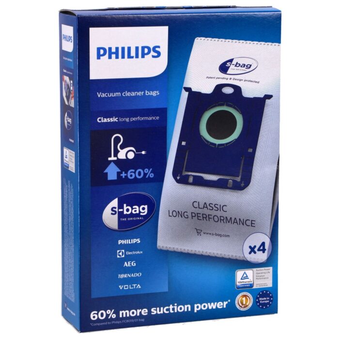 Ervaar krachtige reiniging met de Philips Stofzuigerzakken S-bag. Deze synthetische zakken bieden een verhoogde duurzaamheid en filteren vrijwel alle stofdeeltjes, waardoor ze bijzonder geschikt zijn voor mensen met allergieën. Dankzij het slimme ontwerp zorgen ze voor een optimale luchtstroom en behouden ze de zuigkracht van uw stofzuiger. De set bevat vier zakken en is TÜV-gecertificeerd, wat garandeert dat u kunt vertrouwen op hun hoge filtercapaciteit en prestaties. Maak het schoonmaken eenvoudiger en efficiënter met deze betrouwbare stofzuigerzakken.