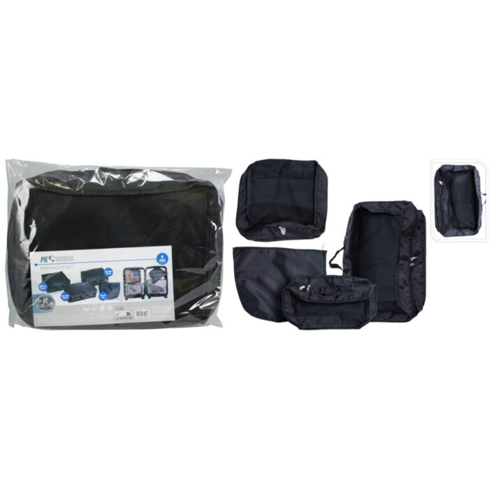 Bescherm je koffers met de stijlvolle opbergtas voor koffer set in elegant zwart. Deze set van vier tassen is ontworpen om je koffers veilig en georganiseerd op te bergen, waardoor ze beschermd zijn tegen stof, krassen en andere beschadigingen. Ideaal voor zowel thuisgebruik als tijdens het reizen, zorgen deze tassen ervoor dat je koffers schoon en compact blijven. Dankzij het slimme ontwerp kunnen ze eenvoudig stapelbaar worden opgeborgen, waardoor je ruimte bespaart. Geef je koffers de verzorging die ze verdienen met deze praktische en duurzame opbergtassen.