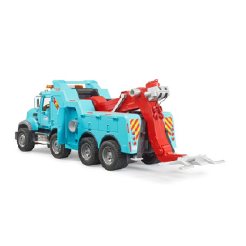 De Vrachtwagen MACK Granite Bergings- en Sleepwagen is de perfecte speelgoedauto voor jonge avonturiers. Dit kleurrijke voertuig is ideaal voor kinderen die houden van zware voertuigen en spannende spellen. Met de realistische licht- en geluidsfuncties wordt elk spel een avontuur!