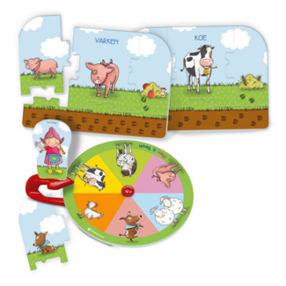 Met het spel Clementoni Fien en Teun op de Boerderij leren kinderen van 3 tot 5 jaar alles over boerderijdieren. Dit educatieve spel is perfect voor jonge ontdekkingsreizigers die willen spelen en leren. De kleurrijke puzzelstukken en de draaischijf zorgen voor veel plezier!