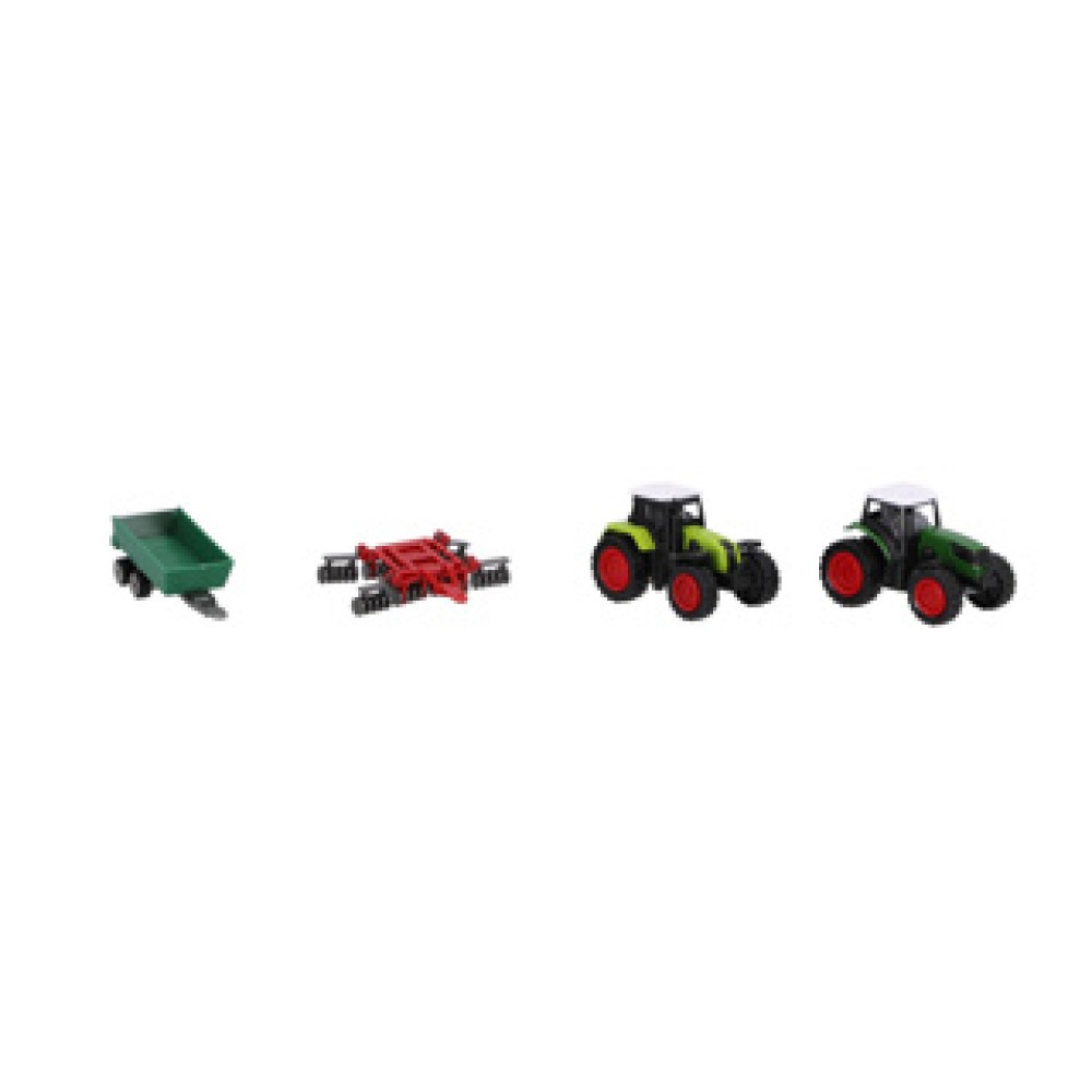 Ontdek de Boerderijset met twee tractoren en accessoires, perfect voor jonge avonturiers vanaf drie jaar. Deze speelset bevat twee gedetailleerde diecast tractoren, elk met een bijpassende aanhanger, die kinderen uitnodigt om hun verbeelding de vrije loop te laten. Laat je kleintje fantaseren over boerderijactiviteiten en transport terwijl ze leren spelen. Dankzij de realistische modellen stimuleert deze set niet alleen creatief spel, maar ook de ontwikkeling van sociale vaardigheden. Een ideale aanvulling op elke speelhoek en een geweldige manier om het boerenleven te ontdekken!