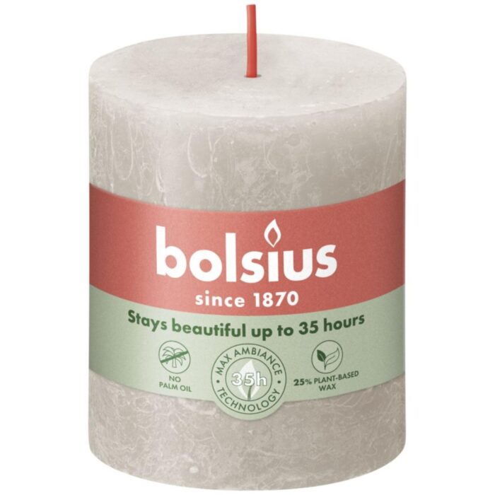 De Bolsius Rustiek stompkaars in zandgrijs is perfect voor elke gelegenheid. Deze prachtige kaars van 80×68 mm voegt een warme touch toe aan jouw huis. Geniet van de ontspannende sfeer die deze kaars creëert, of je nu binnen of buiten bent.