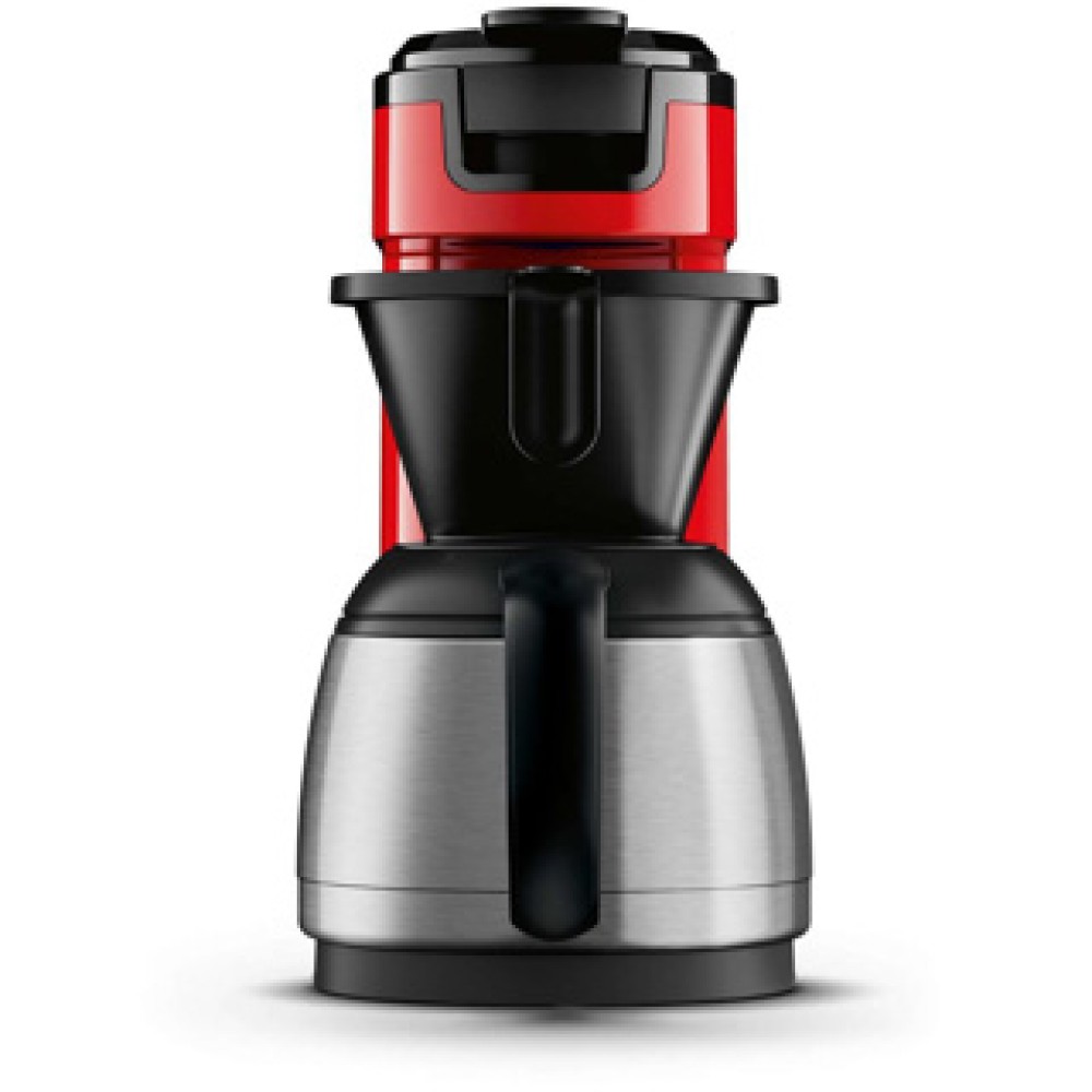 Ervaar de veelzijdigheid van de Philips Senseo Switch in een elegante diep rode uitvoering. Deze innovatieve koffiezetmachine stelt je in staat om moeiteloos één of twee kopjes koffie of een volledige kan filterkoffie te zetten, simpelweg met een druk op de knop. De roestvrijstalen thermische kan houdt je koffie langdurig warm en smaakvol. Met een capacitief waterreservoir en een duurzaam ontwerp, vervaardigd uit gerecycled plastic, is deze machine perfect voor de milieubewuste koffieliefhebber die geen concessies wil doen aan kwaliteit en gemak. Geniet van elke kop met deze stijlvolle en functionele koffiemaker.