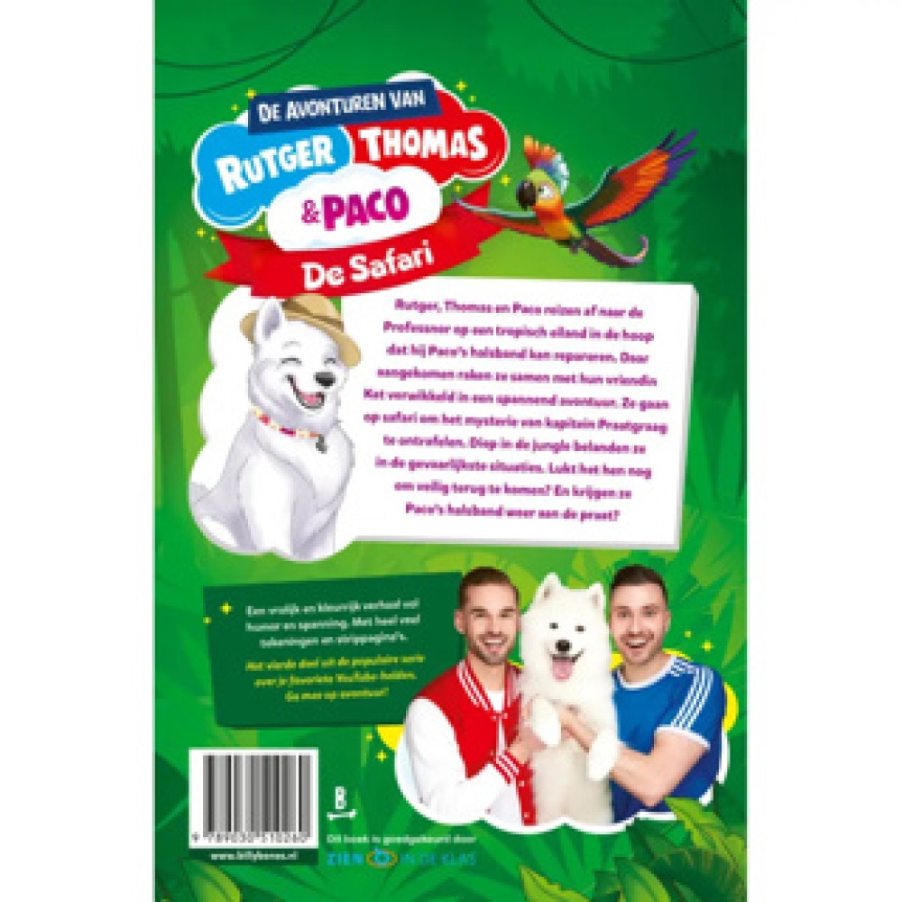 Ontdek de spannende wereld van "Rutger, Thomas en Paco: De Safari". Dit kinderboek neemt jonge lezers mee op avontuur met de populaire YouTubers Rutger en Thomas, vergezeld door hun trouwe hond Paco. Vol humor en spannende wendingen is dit verhaal perfect voor kinderen die houden van avontuur en de charme van hun favoriete online sterren. Dit boek stimuleert de verbeelding en biedt een geweldige manier om lezen leuk te maken. Laat je kind mee op reis gaan met Rutger, Thomas en Paco, en beleef samen de leukste momenten!