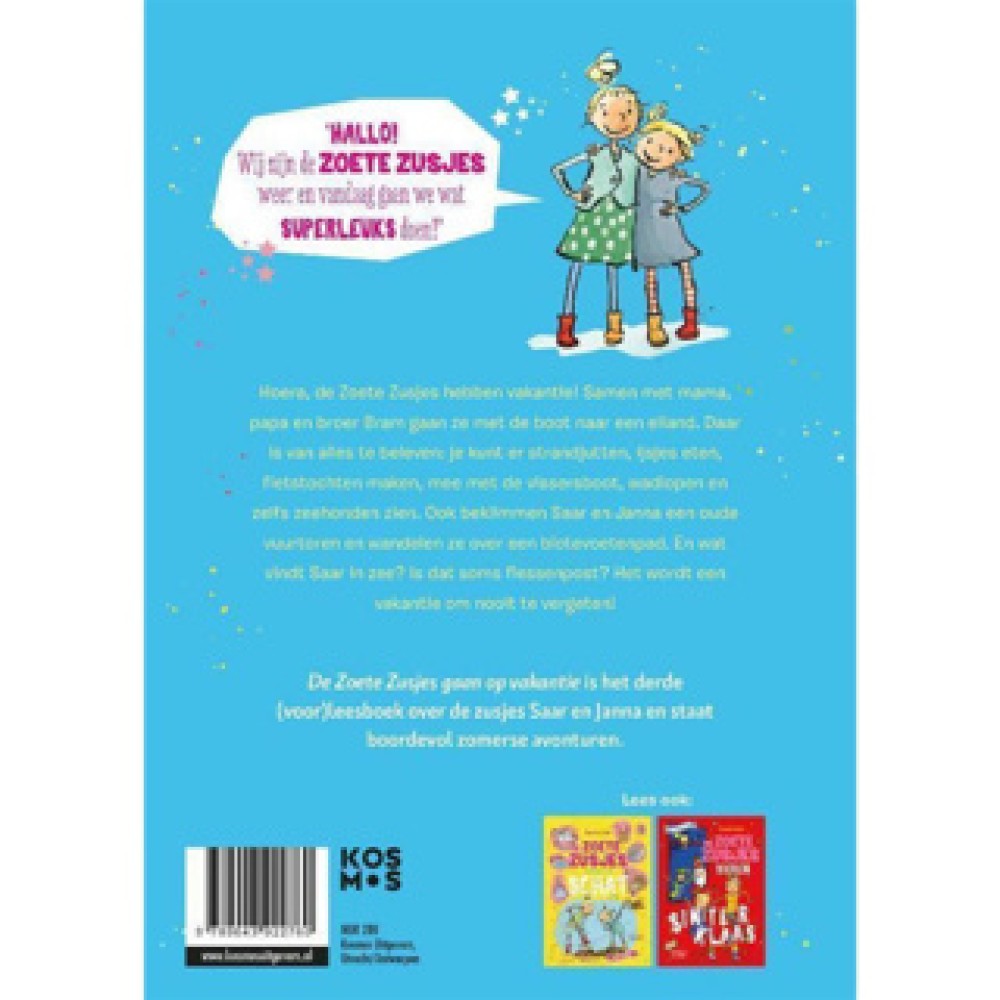 “De Zoete Zusjes Gaan op Vakantie” is een vrolijk kinderboek voor kinderen van 4 tot 7 jaar. Dit boek neemt je mee naar een prachtig eiland, waar de zusjes Saar en Janna allerlei leuke dingen beleven. Perfect voor voorleesmomenten of zelf lezen!
