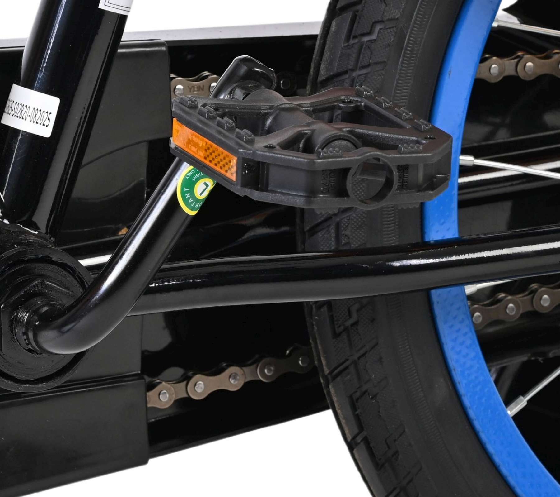 De fiets is uitgerust met twee handremmen, zodat er altijd veilig en gecontroleerd geremd kan worden. De gesloten kettingkast beschermt kleine vingertjes en houdt de ketting schoon. Dankzij de reflectoren in de wielen, voor en achter, is je kind goed zichtbaar in het verkeer.