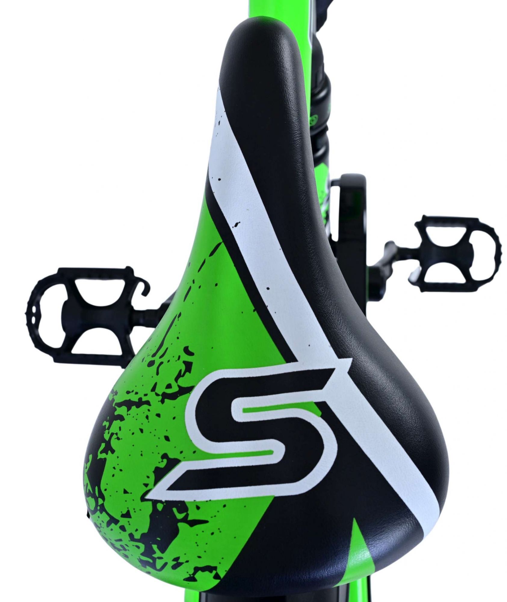 Veiligheid staat voorop! Daarom heeft deze gave fiets een handrem en terugtraprem. Daarnaast heeft de fiets een leuke bel en reflectoren in de wielen. Ook aan het comfort is gedacht. De mooie zwarte Volare fiets met groene accenten heeft een standaard zodat hij netjes blijft staan. Om zo lang mogelijk van de fiets te kunnen genieten heeft deze een extra lange zadelpen waardoor de fiets nóg langer met het kind meegroeit en ook het stuur is in hoogte verstelbaar.