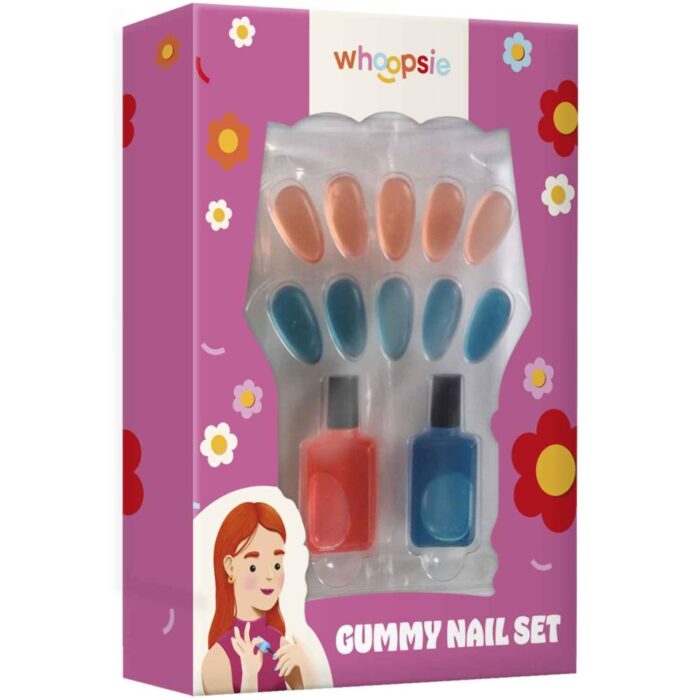 De Snoep Whoopsie Nail Set is perfect voor iedereen die van nagels houdt en dol is op snoep! Deze set biedt een leuke manier om je nagels te versieren met kleur en creativiteit. De nagels zijn gemaakt van zacht, fruitig gummi, wat ze comfortabel maakt om te dragen.