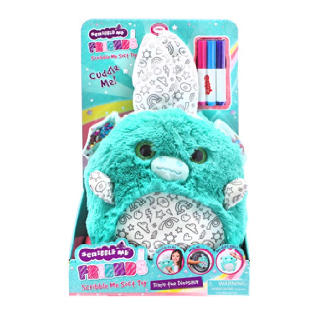 Pluchen Scribble Me-knuffels om zelf in te kleuren. Inclusief stiften. Geschikt vanaf 3 jaar.