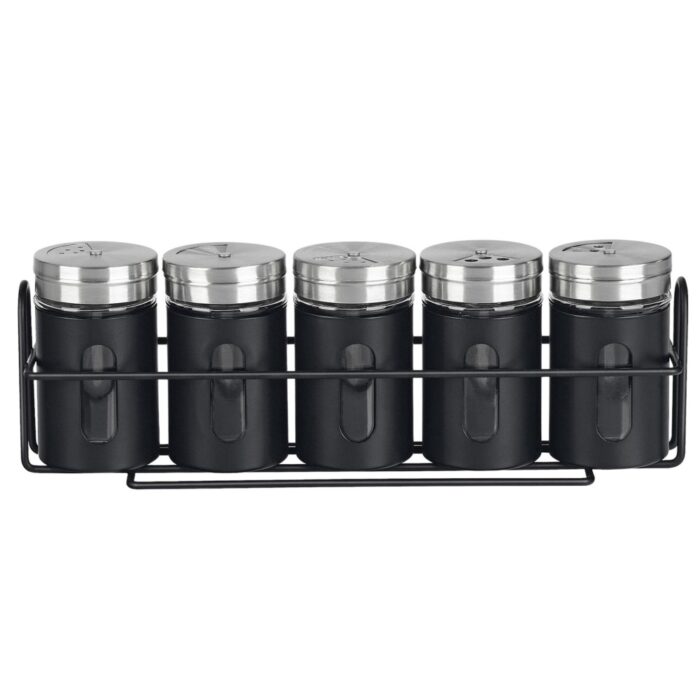 De Kruidenstrooier venster met rek zwart is de perfecte aanvulling voor elke keuken. Met deze set van vijf kruidenstrooiers serveer je eenvoudig je favoriete kruiden en specerijen. Het stijlvolle vensterontwerp maakt het gemakkelijk om te zien wat erin zit, terwijl het bijpassende rek zorgt voor een georganiseerde opbergoplossing.