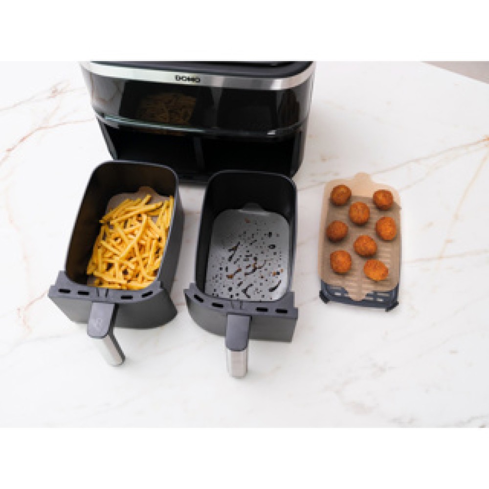 Bescherm je dubbele airfryer met de Nostik beschermfolie set van vier. Deze herbruikbare folies zijn speciaal ontworpen om de binnenkant van je airfryer schoon te houden, zodat je altijd kunt genieten van een optimale kookervaring. Ze zijn bestand tegen hoge temperaturen en kunnen eenvoudig op maat worden geknipt. Dankzij de handige geïntegreerde handvaten zijn ze eenvoudig in gebruik. Bovendien zijn ze makkelijk schoon te maken, wat ze perfect maakt voor regelmatig gebruik. Houd je airfryer in topconditie en bespaar tijd met deze praktische folies!