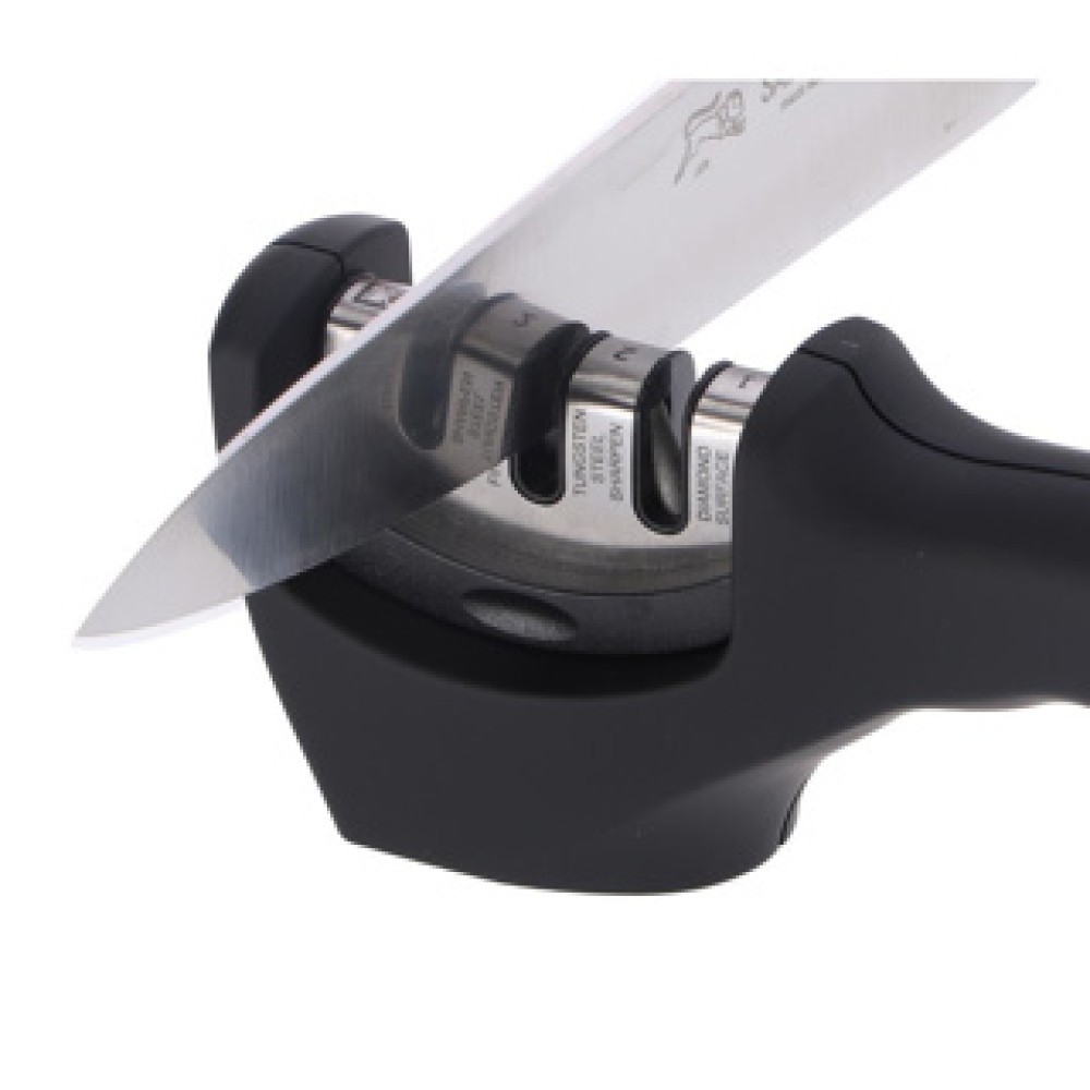Met deze 3 in 1 messenslijper van Richardson Sheffield is het zeer eenvoudig uw keukenmessen vlijmscherp te houden.