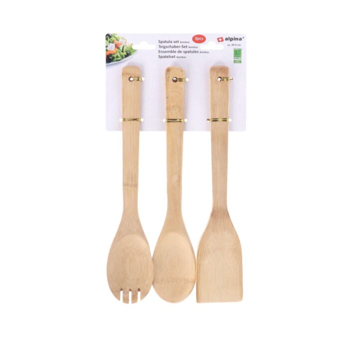 De Alpina Spatelset is een praktische toevoeging voor elke keuken. Deze set bestaat uit drie bamboe spatels van 29,5 cm, die perfect zijn voor het bereiden van je favoriete gerechten. Met deze spatels maak je koken een stuk gemakkelijker en duurzamer.