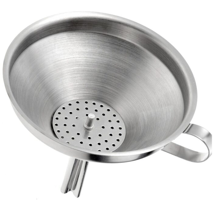 Ontdek de Westmark Vultrechter van roestvrij staal, een onmisbare keukenhulp voor het moeiteloos vullen van flessen. Deze trechter is voorzien van een uitneembare zeef, waardoor vloeistoffen eenvoudig kunnen worden overgoten zonder morsen. Met een opening die geschikt is voor verschillende flessen, is het ideaal voor het aanbrengen van suiker in strooiers of andere vloeibare ingrediënten. Het duurzame roestvrij staal garandeert een lange levensduur en eenvoudig onderhoud, waardoor deze trechter zowel praktisch als stijlvol is voor elke kookliefhebber. Maak het vullen van flessen een fluitje van een cent met deze veelzijdige trechter.