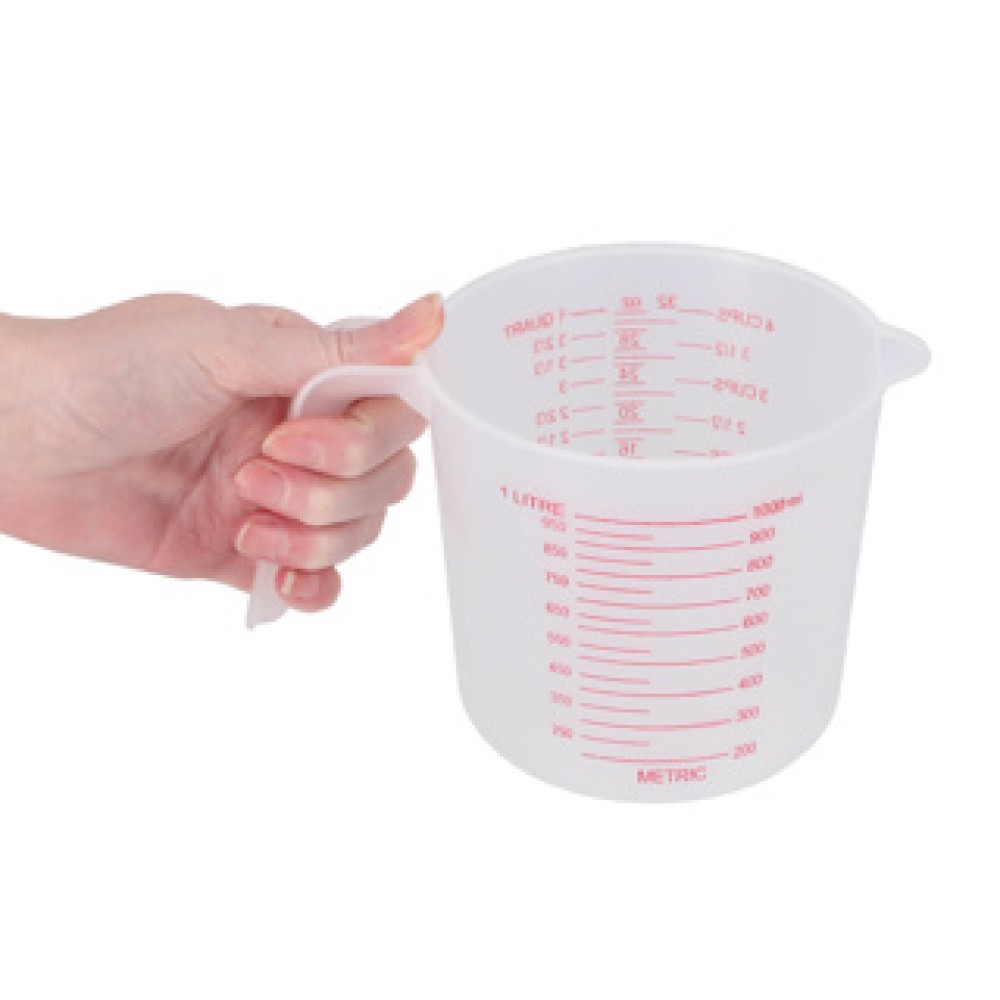 De Maatbeker kunststof 1 l is onmisbaar in iedere keuken. Met een capaciteit van 1 liter meet je eenvoudig vloeistoffen en ingrediënten af voor al jouw heerlijke recepten. Deze maatbeker is licht, duurzaam en gemakkelijk schoon te maken, wat hem perfect maakt voor dagelijks gebruik.