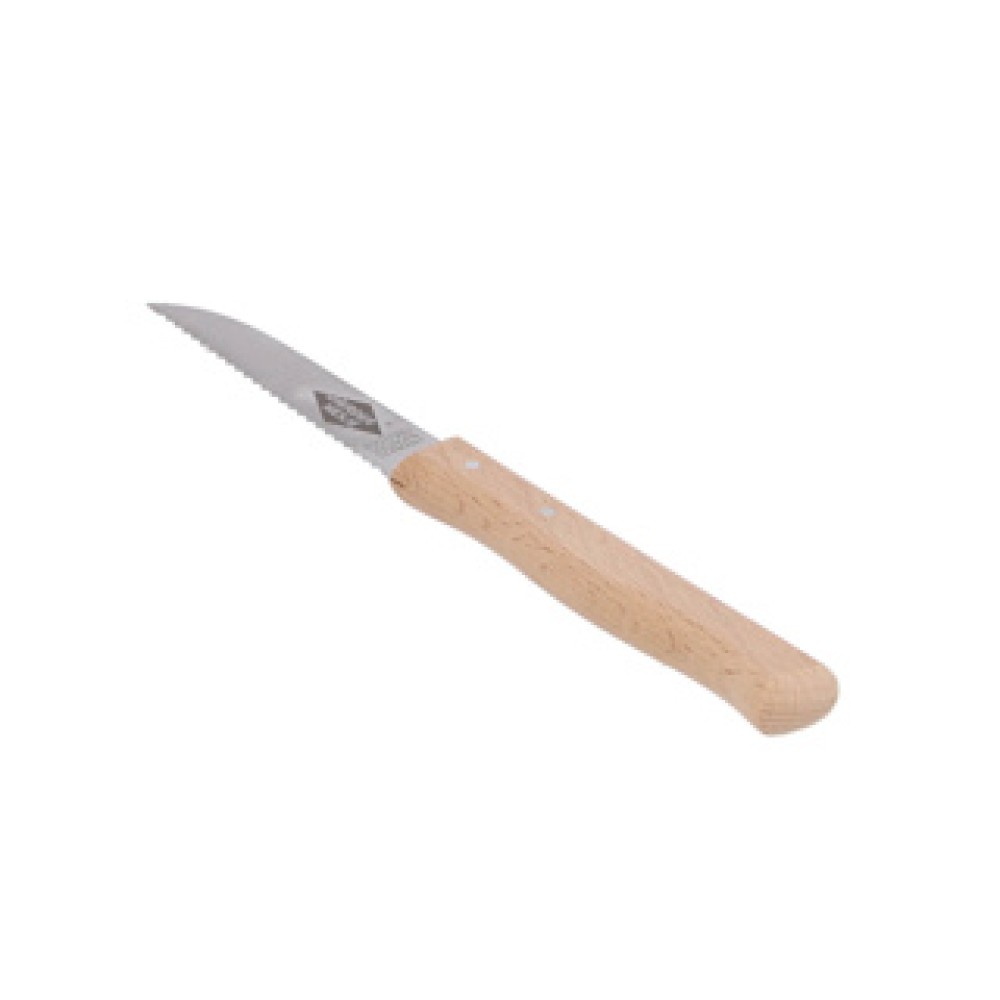 Het Herder tomatenmes is perfect voor het snijden van tomaten en andere zachte vruchten. Dit mes heeft een gekartelde rand en is 8 cm lang, waardoor het makkelijk te gebruiken is in de keuken. Het mes is gemaakt van duurzaam roestvrij staal en heeft een heft van FSC-gecertificeerd beukenhout. Zo zorg je niet alleen voor een goed snijdend mes, maar ook voor de natuur.