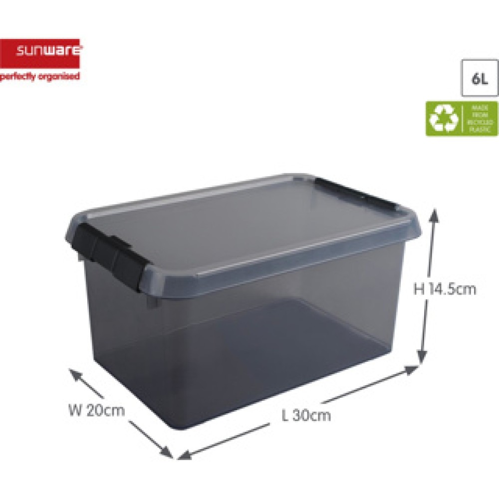 De Comfort Line opbergbox van 6 liter is een praktische oplossing voor al je opbergbehoeften. Met een transparant en modern ontwerp in grijs en zwart, is deze box perfect voor thuis, op kantoor of onderweg. De afmetingen van 30 x 20 x 14,5 cm maken het eenvoudig om de box in verschillende ruimtes te plaatsen.