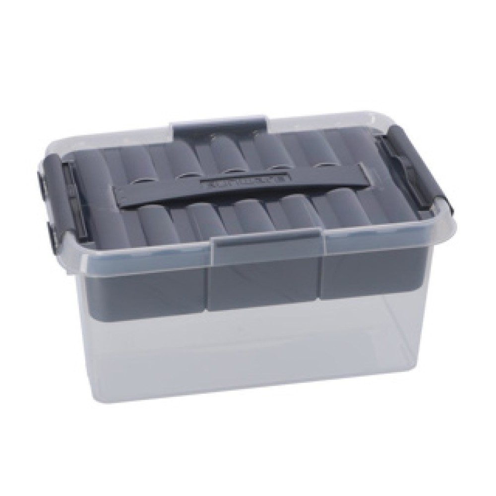 De Sunware Q-Line opbergbox met een inhoud van 6 liter is de perfecte oplossing om je huis of kantoor georganiseerd te houden. Deze handige opbergbox is transparant, waardoor je snel kunt zien wat erin zit. Het grijze deksel sluit stevig met vier klemmen, zodat alles veilig opgeborgen is.